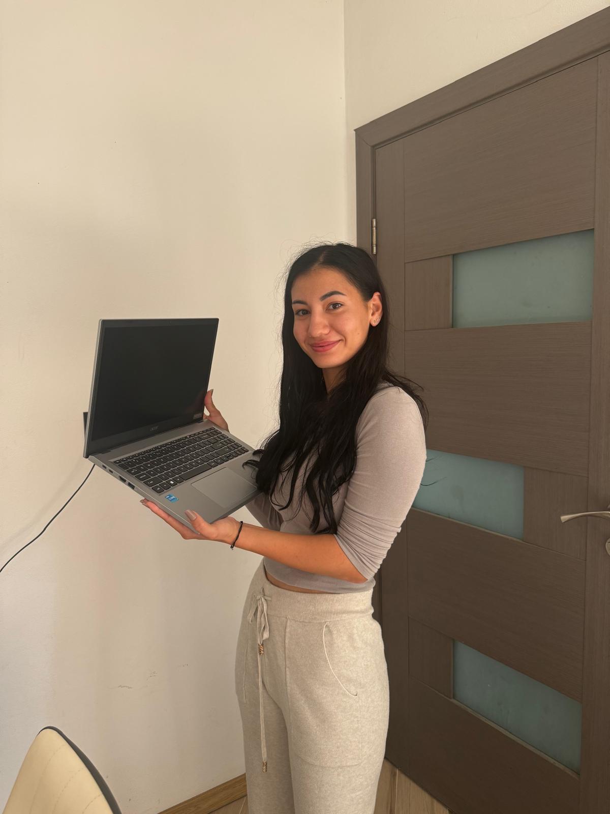 Doamna Andreea a intrat deja in posesia premiului: un laptop marca Acer 15.6'' Extensa EX215-23, FHD-IPS, Procesor AMD Ryzen 5 7520U, 8GB LPDDDR5, 512GB SSD, AMD Radeon 610M, No OS, Steel Gray – NX.EH3EX.01D.